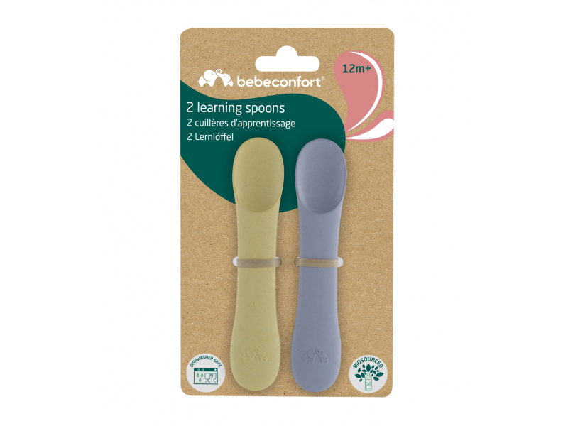 Lžičky pro nejmenší originálního tvaru pro snadné uchopení jsou vyrobeny s ohledem na životní prostředí i zdraví vašeho dítěte z bioplastu. Bioplast je tvořen ze 40% dřevěnými vlákny a ze 60% rostlinným plastem, vyráběným z recyklovaného jedlého oleje. Lžičky jsou ideální pro první pokusy dítěte o samostatné krmení. Možno mýt v myčce. Vhodné pro děti od 12 měsíců.