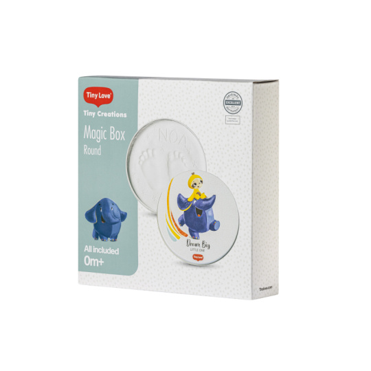 Rámeček s víkem a stojánkem Tiny Creations Magic Box nabízí prostor pro otisk ručičky nebo nožičky Vašeho miminka. Vyrobte si krásnou dekoraci, která vám zároveň pomůže uchovat vzpomínky na krásné období po narození vašeho dítěte. Použití dle přiloženého návodu je jednoduché, rychlé a bez nepořádku. Balení obsahuje rámeček a vše, co potřebujete k výrobě otisku. Výrobek je dermatologicky testován a je pro vaše dítě 100% zdravotně nezávadný.
