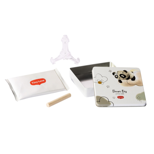 Rámeček s víkem a stojánkem Tiny Creations Magic Box nabízí prostor pro otisk ručičky nebo nožičky Vašeho miminka. Vyrobte si krásnou dekoraci, která vám zároveň pomůže uchovat vzpomínky na krásné období po narození vašeho dítěte. Použití dle přiloženého návodu je jednoduché, rychlé a bez nepořádku. Balení obsahuje rámeček a vše, co potřebujete k výrobě otisku. Výrobek je dermatologicky testován a je pro vaše dítě 100% zdravotně nezávadný.