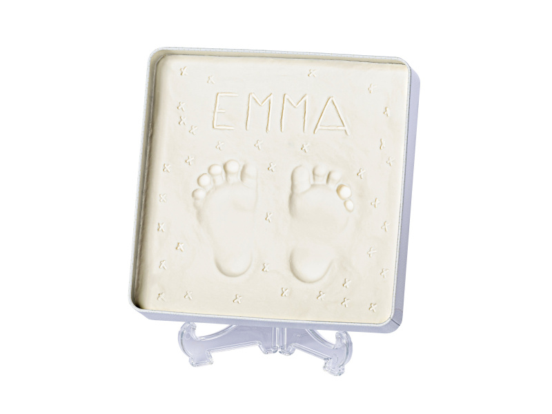 Rámeček s víkem a stojánkem Tiny Creations Magic Box nabízí prostor pro otisk ručičky nebo nožičky Vašeho miminka. Vyrobte si krásnou dekoraci, která vám zároveň pomůže uchovat vzpomínky na krásné období po narození vašeho dítěte. Použití dle přiloženého návodu je jednoduché, rychlé a bez nepořádku. Balení obsahuje rámeček a vše, co potřebujete k výrobě otisku. Výrobek je dermatologicky testován a je pro vaše dítě 100% zdravotně nezávadný.