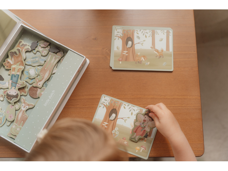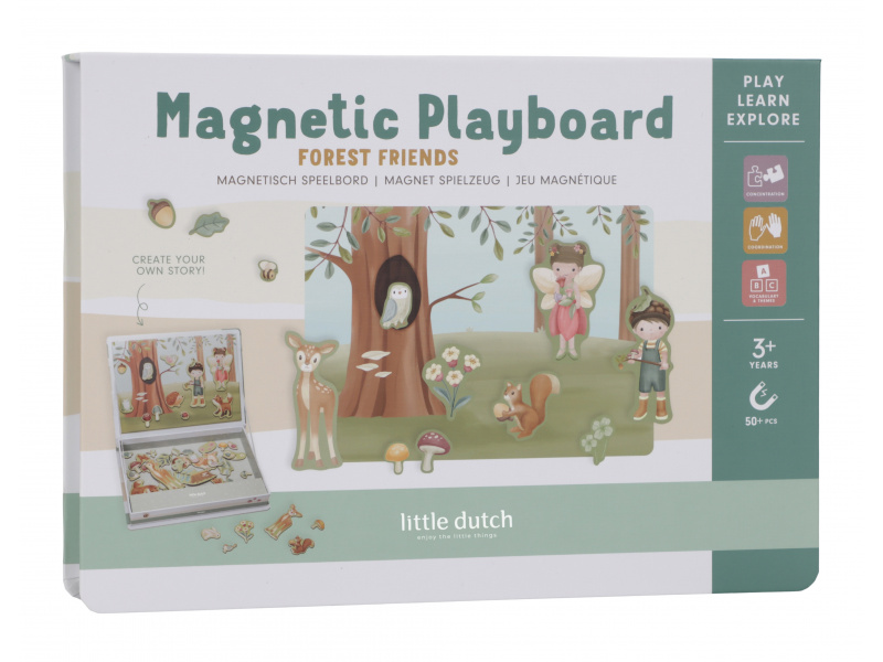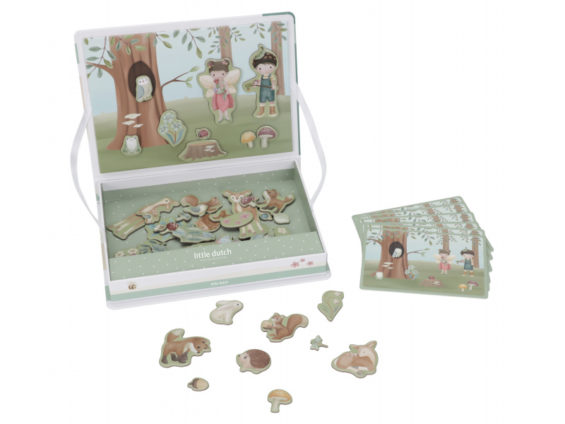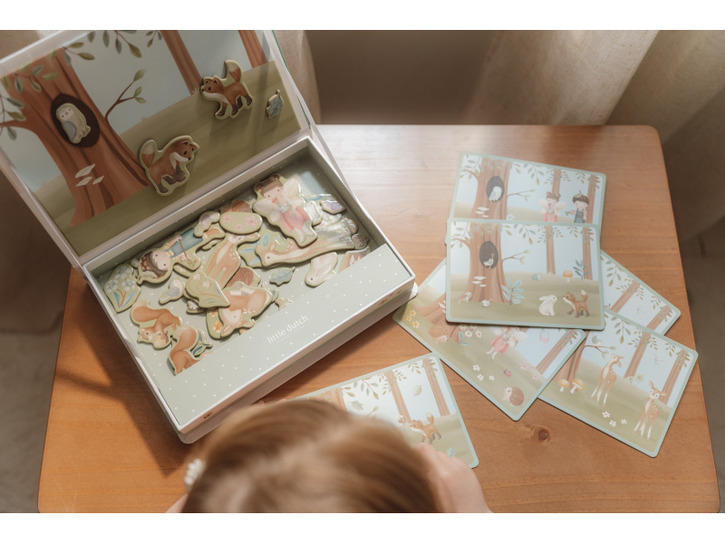 S touto magnetickou hrou může vaše dítě vytvářet obrazy podle vzoru na kartě nebo použít vlastní fantazii a vytvářet své originální kombinace. Tato skvělá hra zabaví děti doma i na cestách. Magnetická hra se skládá z magnetických dílů s motivy ze života v lese a 6 vzorových karet. Magnetické víko lze použít jako herní desku. Hračka je součástí designové kolekce hraček Little Dutch Forest Friends inspirované životem v lese. Rozměry: 19 x 26 x 4,1 cm Vhodné pro děti od 3 let.