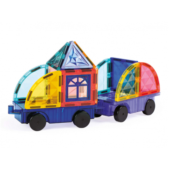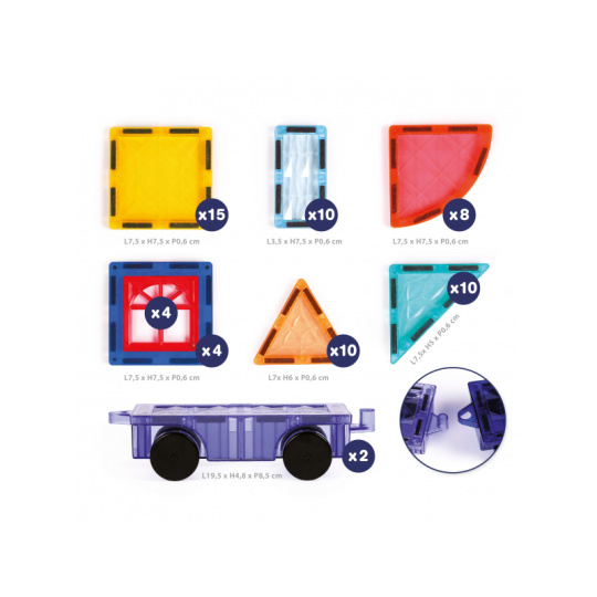 Objevte svět plný pohybu a fantazie s magnetickou stavebnicí Ludi! Praktický plastový box s držadlem ukrývá 63 magnetických dílků, mezi nimiž jsou i 2 podvozky s kolečky, díky kterým mohou děti stavět vlastní auta, náklaďáky nebo třeba pohyblivé stavební stroje. Děti mohou kombinovat různé části a vytvářet nekonečné množství vozidel a stavebních struktur. Každý dílek má integrované magnety po stranách, takže není potřeba žádné klipy ani složité zámky Dílky k sobě přilnou okamžitě, což umožňuje i menším dětem samostatně stavět vlastní výtvory Rozmanité barvy a tvary pro neomezené možnosti Podporuje logické myšlení díky zkoumání magnetických spojů Rozvíjí jemnou motoriku při manipulaci s jednotlivými dílky Podněcuje kreativitu prostřednictvím nekonečného množství kombinací a konstrukcí Perfektní dárek pro malé stavitele a tvořivé duše Všechny díly lze po skončení hry jednoduše uložit do průhledného boxu s držadlem, ideálního na cesty nebo pro přehledné uskladnění doma. Materiál: průhledný ABS plast s magnetickými spoji Vhodné pro děti od 3 let.