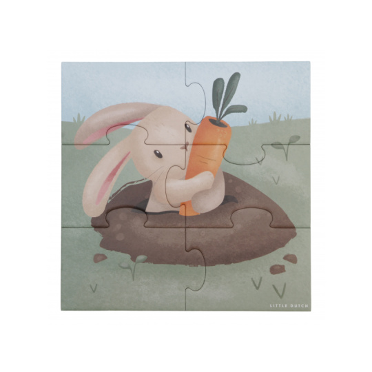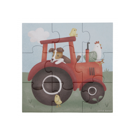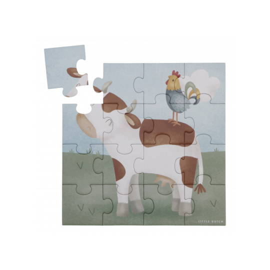 Seznamte se s životem na farmě a zkoumejte spolu s vaším dítětem tvary, barvy i zvířátka. Sada obsahuje 4 varianty puzzle skládaček pro nejmenší s krásnými ilustracemi. Jednotlivé skládačky mají od 4 do 16 dílků z pevného kartonu, které jsou dokonale tvarované pro malé dětské ručičky. Hračka je součástí designové kolekce hraček a doplňků Little Dutch Farma. Puzzle rozvíjí jemnou motoriku dítěte i dovednosti jako řešení problémů, trpělivost a rozpoznávání tvarů. Rozměry boxu: 21,5 x 21,5 x 5,2 cm Vhodné pro děti od 2 let.