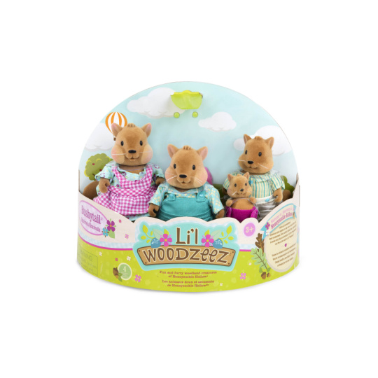 Rodinu veverek Bushytail tvoří máma Maggie, táta Oliver a děti Henry a Honeybun. Všichni žijí v městečku Honeysuckle Hollow spolu s ostatními postavičkami Li'l Woodzeez. Postavičky zvířátek Li'l Woodzeez jsou vyrobené z měkkého příjemného materiálu a mají pohyblivé ruce, nohy i hlavy pro zábavnou předstíranou hru. Každá postavička má na sobě krásné barevné oblečení. Sada obsahuje 4 postavičky veverek. Další postavičky zvířátek, domečky, obchody, dopravní prostředky apod. se prodávají samostatně. Všechny postavičky a doplňky Li'l Woodzeez jsou navzájem kompatabilní a umožní vám vytvořit originální městečko pro nekonečnou hru rozvíjející fantazii a kreativitu vašeho dítěte. Vhodné pro děti od 3 let.
