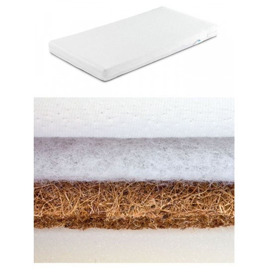 Dětská molitanová matrace Sensillo s vrstvou kokosového vlákna a snímatelným potahem.