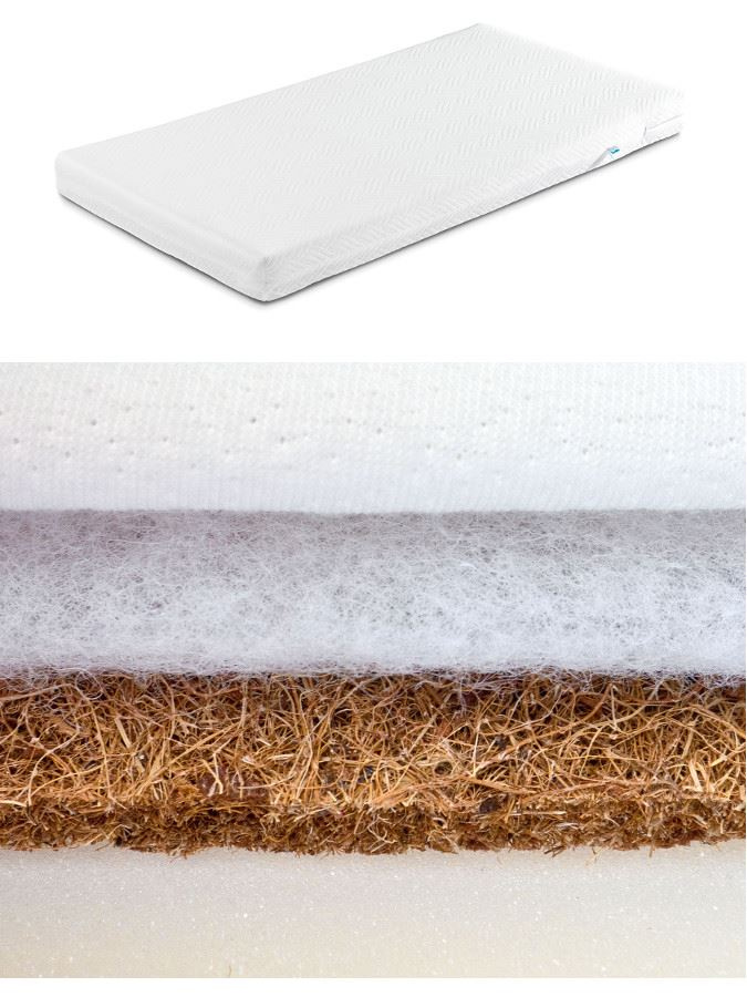Dětská molitanová matrace Sensillo s vrstvou kokosového vlákna a snímatelným potahem.