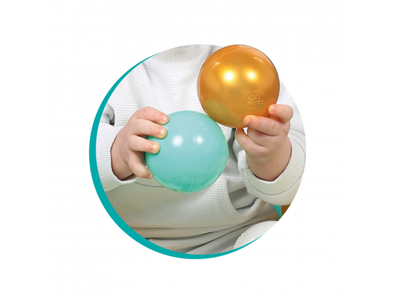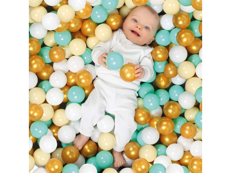 Sada 90 plastových míčků je ideální pro doplnění hracích ohrádek, bazénků nebo jako základ pro vlastní míčkový bazén. Měkký, ale odolný materiál zajišťuje bezpečné hraní i pro nejmenší. Díky průměru 6 cm se míčky dětem snadno drží, hází i mačkají – podporují tak rozvoj jemné motoriky a koordinace pohybu. Jemné odstíny ladí s každým interiérem: kombinace bílé, béžové, modré a zlaté vytváří elegantní a nadčasový vzhled, který si zamilují děti i rodiče. Balení obsahuje 90 míčků o průměru 6 cm. Složení: PE (polyethylen) Údržba: omyvatelné teplou vodou a mýdlem Vhodné pro děti od 6 měsíců.