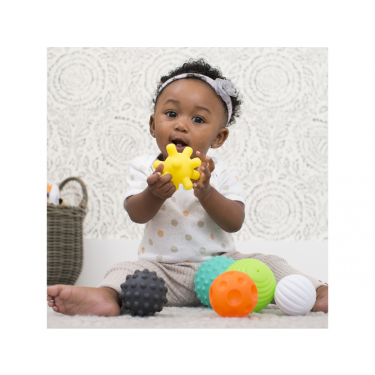 Měkké barevné míčky s různými povrchy a výstupky pro hru i relaxaci s vaším dítětem. Pomáhají rozvíjet hmat i další smysly dítěte. Vhodné pro děti od 6 měsíců.