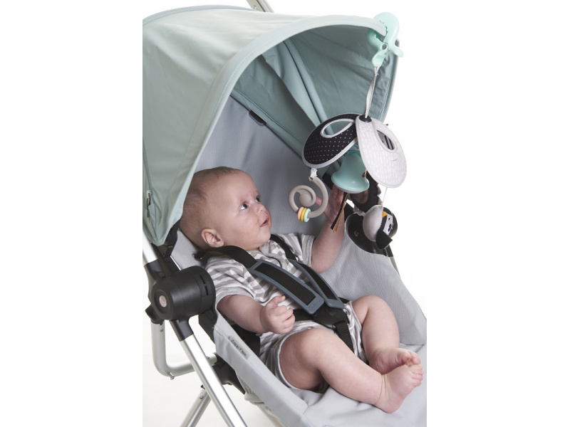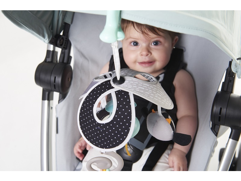 Závěsná hračka Tiny Love zajistí zábavu pro vaše dítě na cestách. Díky plastovému klipu ji lze libovolně zavěsit na autosedačku, kočárek apod. Zvoneček při pohybu jemně cinká. Zavěšené hračky chrastí a šustí. Bezpečné zrcátko, výrazné barvy a různorodé tvary a textury udrží pozornost dítěte. Vhodné pro děti od narození.