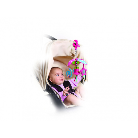 Závěsná hračka Tiny Love zajistí zábavu pro vaše dítě na cestách. Díky plastovému klipu ji lze libovolně zavěsit na autosedačku, kočárek apod. Zvoneček při pohybu jemně cinká. Zavěšené hračky chrastí a šustí. Bezpečné zrcátko, výrazné barvy a různorodé tvary a textury udrží pozornost dítěte. Vhodné pro děti od narození.