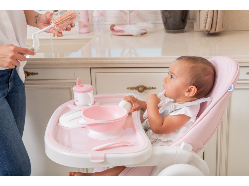 Dětská miska 4v1 KikkaBoo obsahuje misku, dělený talíř, lžičku, vidličku a víčko. Díky přísavce miska neklouže po stole či jídelním pultu. Víčko se snadno otevírá a umožňuje praktické a hygienické uložení lžičky a vidličky. Dělený vyjímatelný talíř umožňuje oddělené servírování jednotlivých částí svačinky či oběda. Misku je možné použít pro ohřívání příkrmu v mikrovlnné troubě. Objem misky: 700 ml Rozměry: 19,5 x 14,4 x 8,6 cm Vhodné pro děti od 6 měsíců.