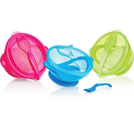 NUBY Miska s přísavkou, vrchnáčikom a lyžičkou 3m+