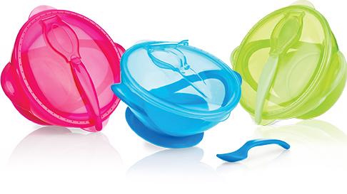 NUBY Miska s přísavkou, vrchnáčikom a lyžičkou 3m+
