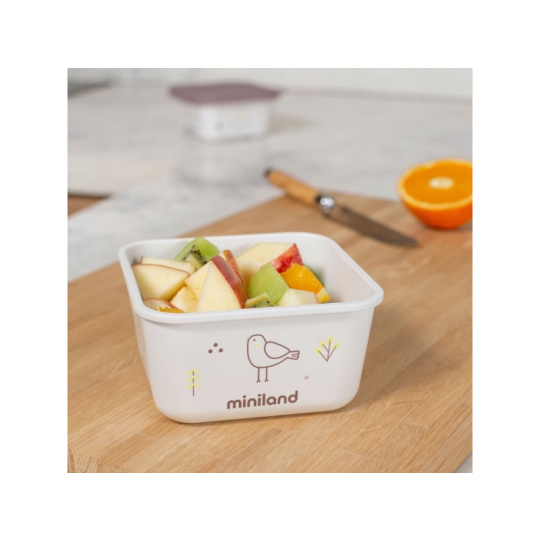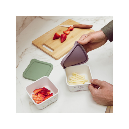 Misky s krásným potiskem jsou vyrobeny z materiálu 100% přírodního původu. Misky jsou ideální pro bezpečné uchování doma připravených dětských příkrmů. Hermetické silikonové víčko chrání obsah misky a pomáhá udržet příkrm déle čerstvý. Misky jsou vhodné do myčky, lednice i mrazáku. Nejsou určeny pro ohřívání v mikrovlnné troubě. Objem jedné misky: 400 ml Složení: bioplast PLA, silikon Neobsahuje bisfenol A.