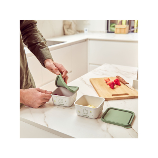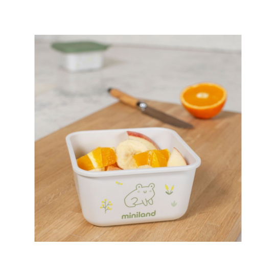 Misky s krásným potiskem jsou vyrobeny z materiálu 100% přírodního původu. Misky jsou ideální pro bezpečné uchování doma připravených dětských příkrmů. Hermetické silikonové víčko chrání obsah misky a pomáhá udržet příkrm déle čerstvý. Misky jsou vhodné do myčky, lednice i mrazáku. Nejsou určeny pro ohřívání v mikrovlnné troubě. Objem jedné misky: 400 ml Složení: bioplast PLA, silikon Neobsahuje bisfenol A.