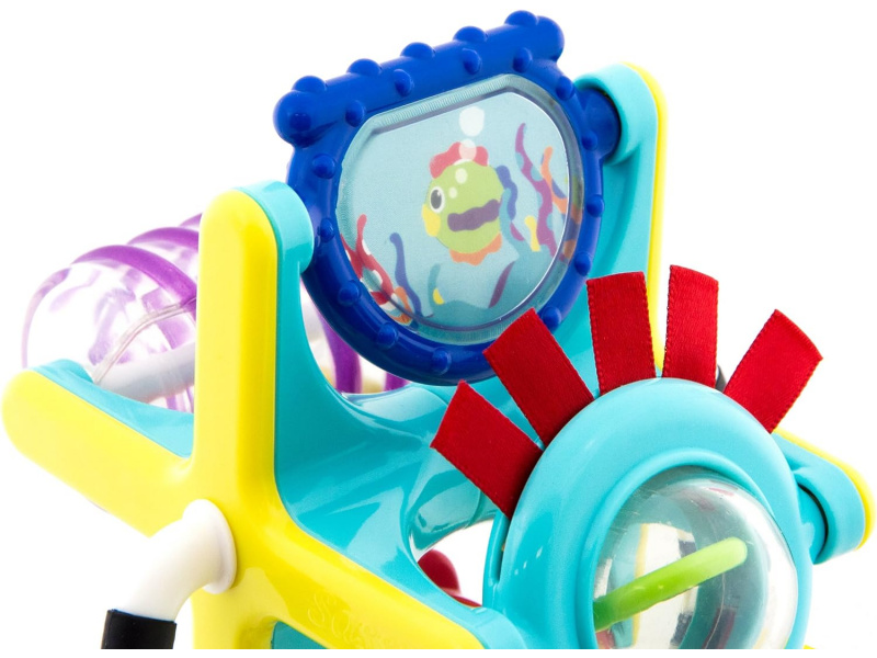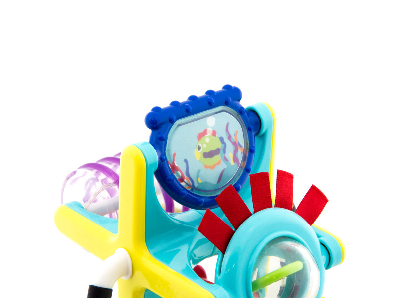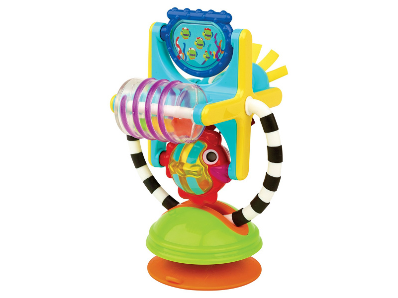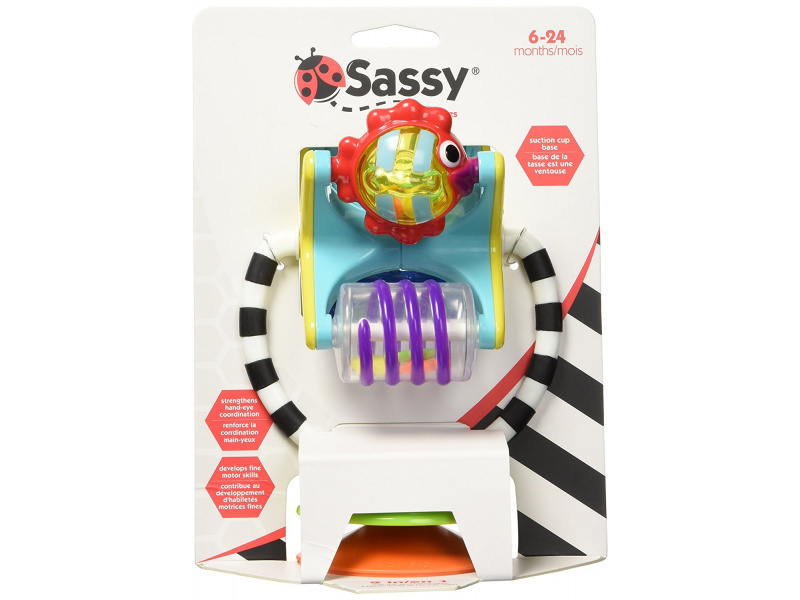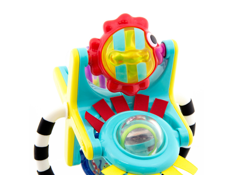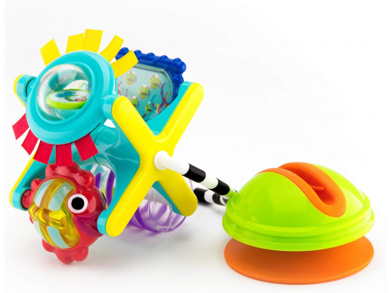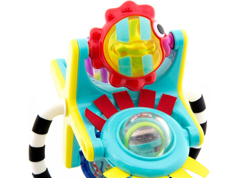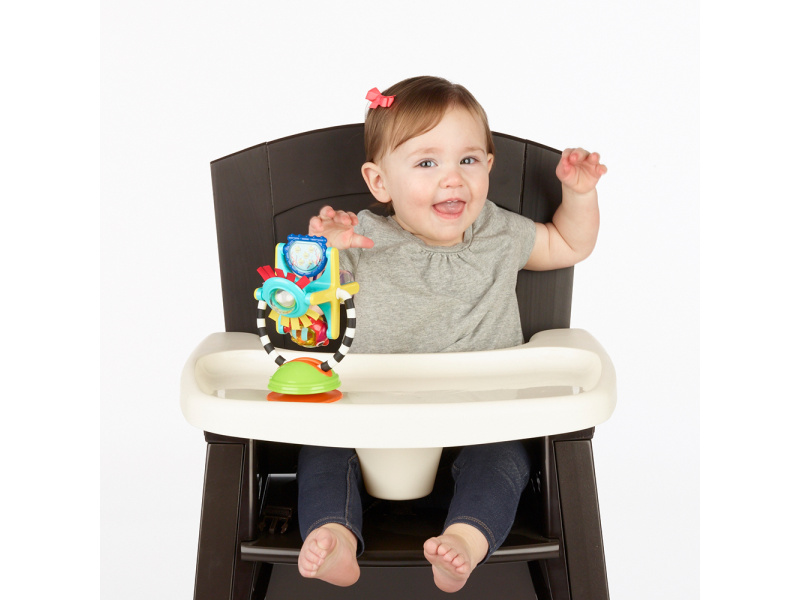 Hračku s přísavkou lze postavit na pult vysoké židličky, stůl apod. Otáčející se mlýnek s různými aktivitami lze používat i samostatně bez základny. Hračka rozvíjí jemnou motoriku dítěte a učí jej vztahu příčina / následek. Rozměry: 18 x 12 x 10 cm Vhodné pro děti od 6 měsíců.