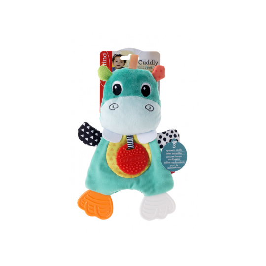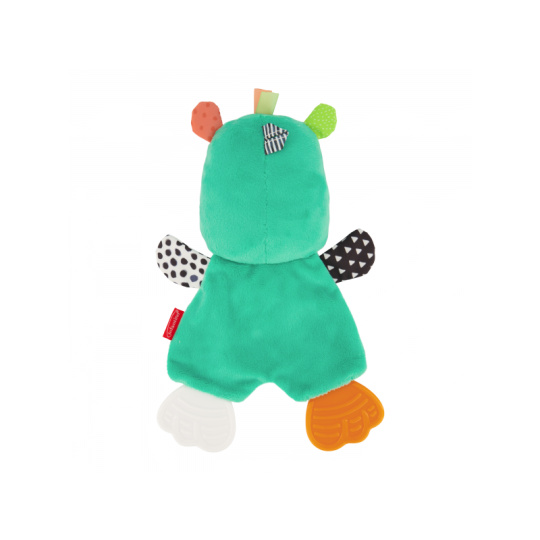 Mazlicí hračka s kousátky je vhodná jako první hračka dítěte. Různorodé textury i šusticí části lákají dítě ke zkoumání rukama i ústy. Kousátka dítěti uleví při prořezávání prvních zoubků. Vhodné pro děti od narození.