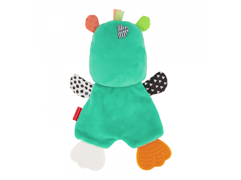 Mazlicí hračka s kousátky je vhodná jako první hračka dítěte. Různorodé textury i šusticí části lákají dítě ke zkoumání rukama i ústy. Kousátka dítěti uleví při prořezávání prvních zoubků. Vhodné pro děti od narození.
