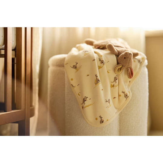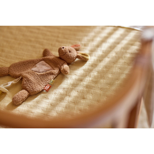 Roztomilý muchláček v podobě klokana z jemného fleece materiálu láká ke hraní i mazlení před spaním v postýlce či v kočárku. Poutko umožňuje připevnit k muchláčkovi šidítko, které tak v postýlce vždy snadno najdete. Rozměry: 26 x 26 x 10 cm Složení: 100% polyester, výplň 100% polyester Možno prát v ruce. Vhodné pro děti od narození.