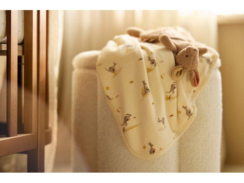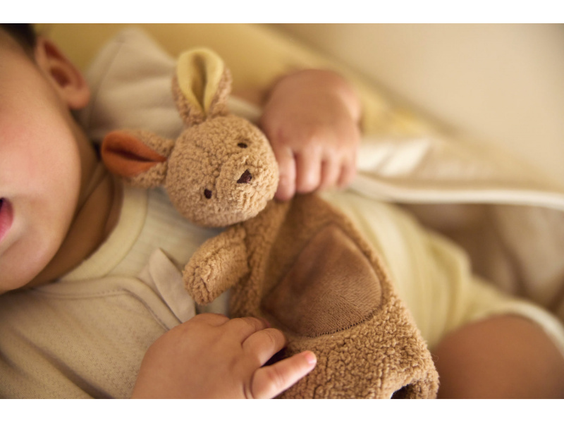 Roztomilý muchláček v podobě klokana z jemného fleece materiálu láká ke hraní i mazlení před spaním v postýlce či v kočárku. Poutko umožňuje připevnit k muchláčkovi šidítko, které tak v postýlce vždy snadno najdete. Rozměry: 26 x 26 x 10 cm Složení: 100% polyester, výplň 100% polyester Možno prát v ruce. Vhodné pro děti od narození.