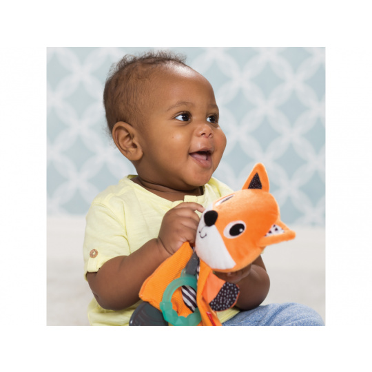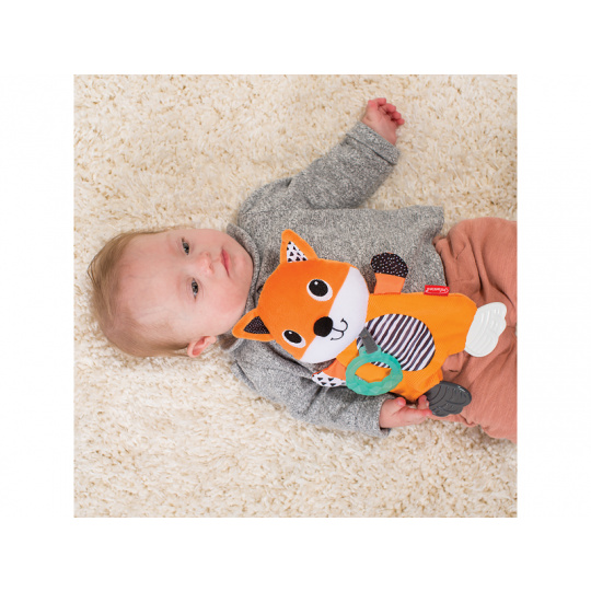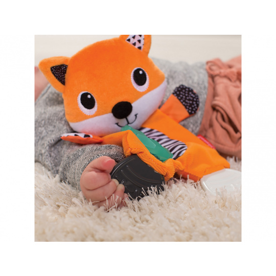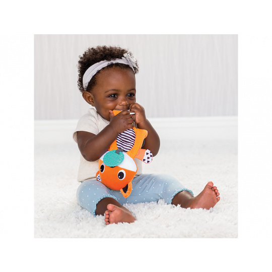 Mazlicí hračka s kousátky je vhodná jako první hračka dítěte. Různorodé textury i šusticí části lákají dítě ke zkoumání rukama i ústy. Kousátka dítěti uleví při prořezávání prvních zoubků. Vhodné pro děti od narození.