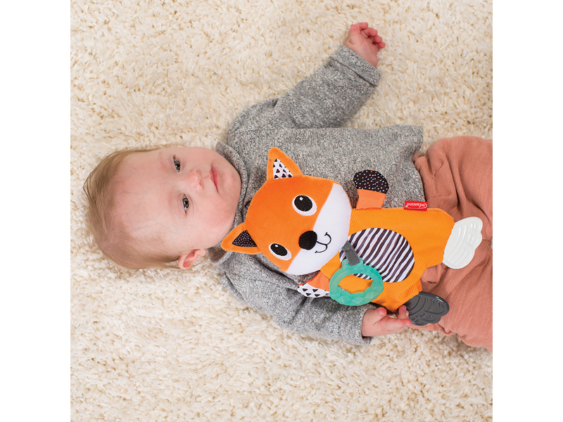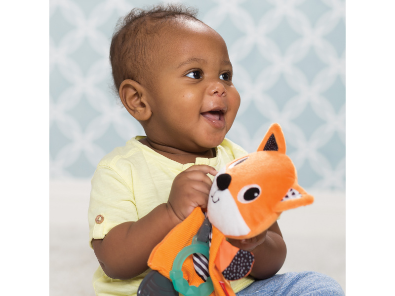 Mazlicí hračka s kousátky je vhodná jako první hračka dítěte. Různorodé textury i šusticí části lákají dítě ke zkoumání rukama i ústy. Kousátka dítěti uleví při prořezávání prvních zoubků. Vhodné pro děti od narození.
