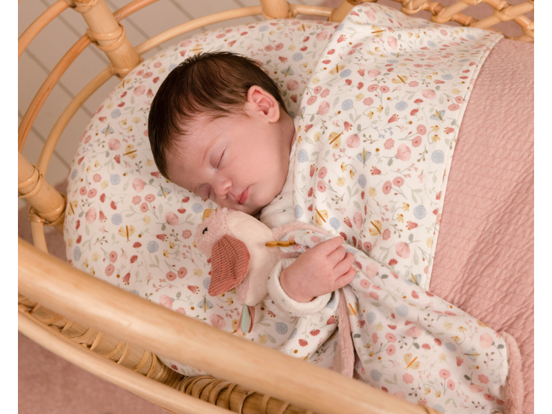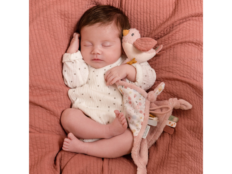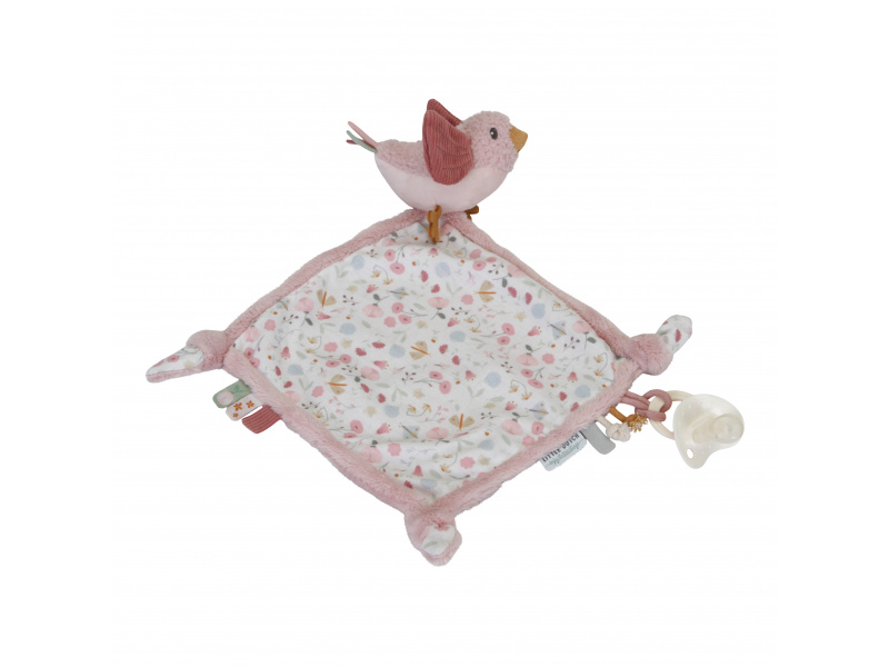 Plyšový muchláček s roztomilým ptáčkem a úchytem pro šidítko láká ke hraní i mazlení. Muchláček je je vyroben z velmi jemného a příjemného materiálu a je ideální jako společník do postýlky pro klidné usínání. Hračka je součástí designové kolekce hraček Little Dutch Květiny a motýli. Rozměry: 35 x 33 x 4 cm Vhodné pro děti od narození.