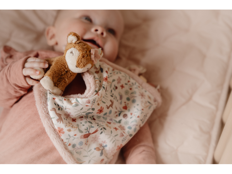 Plyšový muchláček s něžnou srnkou a úchytem pro šidítko láká ke hraní i mazlení. Muchláček je je vyroben z velmi jemného a příjemného materiálu a je ideální jako společník do postýlky pro klidné usínání. Hračka je součástí designové kolekce hraček Little Dutch Fairy Garden inspirované životem na zahradě. Rozměry: 31 x 31 x 6 cm Vhodné pro děti od narození.