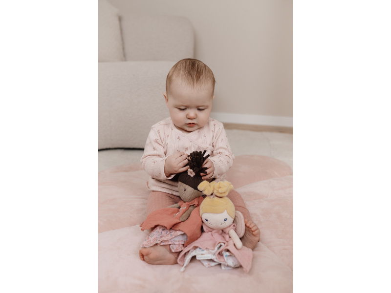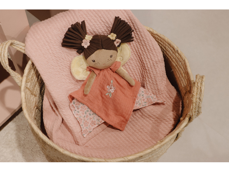 Textilní muchláček v podobě něžné víly Evi láká ke hraní i mazlení. Muchláček je je vyroben z velmi jemného a příjemného materiálu a je ideální jako společník do postýlky pro klidné usínání. Hračka je součástí designové kolekce hraček Little Dutch Fairy Garden inspirované životem na zahradě. Vhodné pro děti od narození.