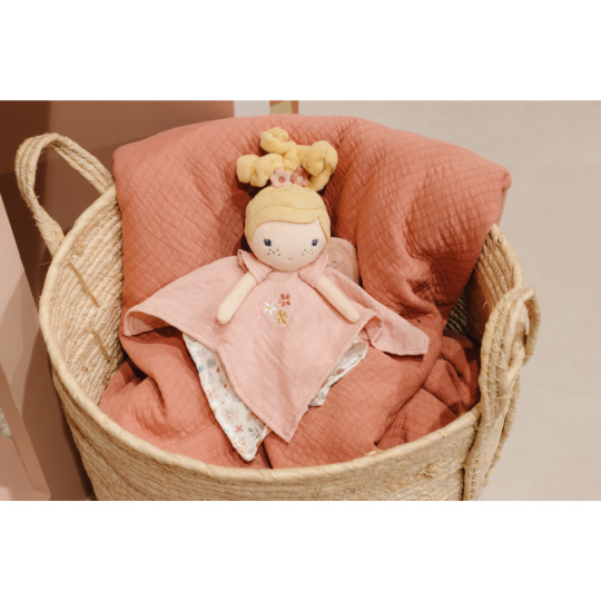 Textilní muchláček v podobě něžné víly Mily láká ke hraní i mazlení. Muchláček je je vyroben z velmi jemného a příjemného materiálu a je ideální jako společník do postýlky pro klidné usínání. Hračka je součástí designové kolekce hraček Little Dutch Fairy Garden inspirované životem na zahradě. Vhodné pro děti od narození.