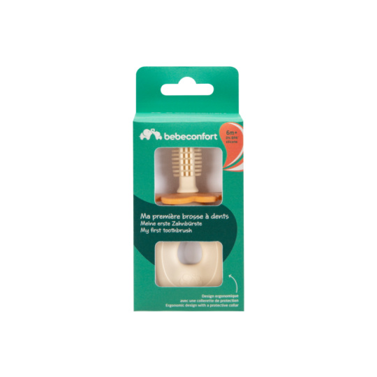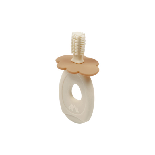 Masážní kartáček na zuby pro nejmenší je vyroben z jemného, měkkého silikonu a umožňuje vám šetrné čištění dásní i prvních zoubků dítěte. Ergonomický design se širokým držadlem je navržen pro snadné uchopení malými dětskými ručičkami, ochranný lem zaručuje bezpečné použití. Kartáček je vhodný pro použití se zubní pastou i bez ní. Vhodné pro děti od 6 měsíců.