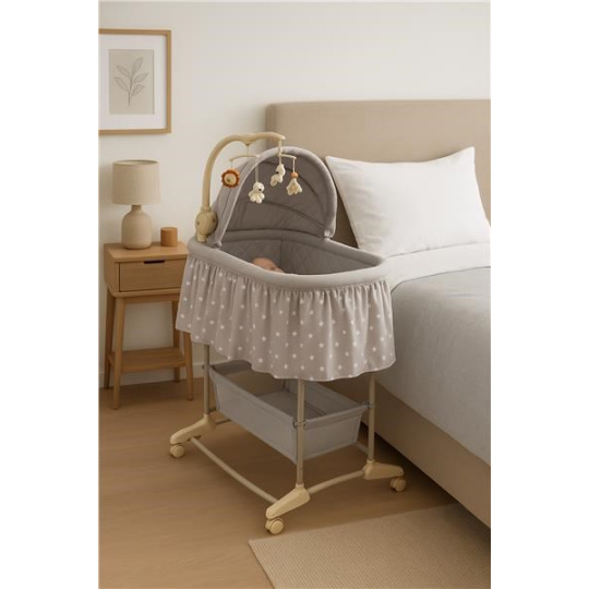 Multifunkční kolébka postýlka pro miminko New Baby hvězdičky šedá