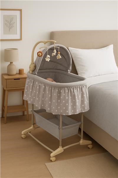 Multifunkční dětská kolébka New Baby je ideální volbou jak pro děti, tak pro rodiče, pro které je klíčová funkčnost a bezpečí. Výrobek slouží jako postýlka i kolébka. Její mobilita poskytuje obrovské pohodlí, protože dítě bude vždy v blízkosti svých rodičů. Praktický koš vám umožní mít vše potřebné na dosah ruky a včas reagovat na potřeby mrňouska, aniž byste se od něj museli vzdalovat. Potah kolébky je vyroben z prodyšného a příjemného na dotek materiálu, který lze snadno sundat a vyprat. Kolotoč s barevnými zvířátky je vybaven nočním světlem, hudebním modulem s 8 melodiemi a funkcí jemných vibrací s možností změny jejich intenzity. Je napájen 3 bateriemi AA LR6-1,5 V (nejsou součástí dodávky). Jednu ze stran postýlky lze rozepnout, což oceníte během každodenní a často i noční péči o Vaše děťátko.