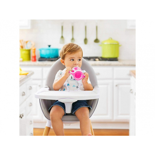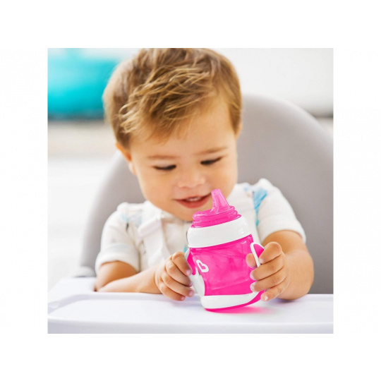 Tento hrneček je skvělý pomocník pro tréning na přechod mezi pitím z láhve k hrnečkům s klasickým pítkem. Optimální velikost je vhodná i na cestování a pobyt venku. Obsah nelze vylít.