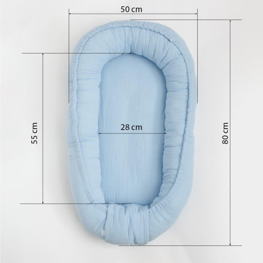 Hnízdečko z mušelínu New Baby je vyrobeno z nejkvalitnější bavlněné příze. Umožňuje uložení miminka v pohodlné poloze a hlavně může být miminko v kokonu umístěno neustále v blízkosti maminky. Při cestování lze hnízdečko vzít s sebou, aby miminko, připoutané k vůni domova a svého místa, mohlo bezstarostně spát na jiném místě. Hnízdečko lze umístit do postýlky, na pohovku, na zem nebo do kočárku. Dítě v něm může spát, odpočívat nebo si hrát. Hnízdečko bude skvělým pomocníkem ve vaší domácnosti. Vhodné pro děti od 0 do 12 měsíců.