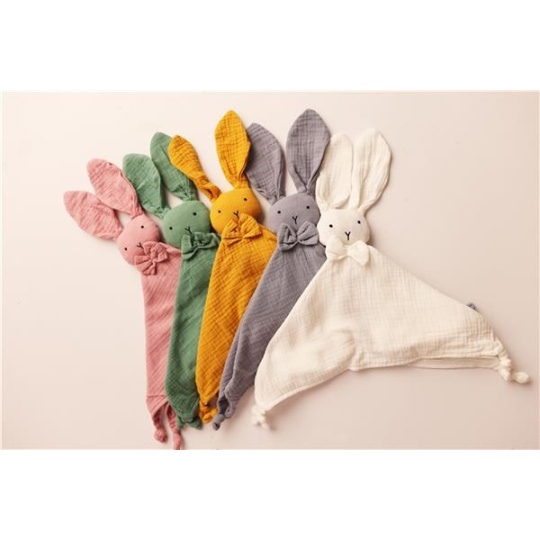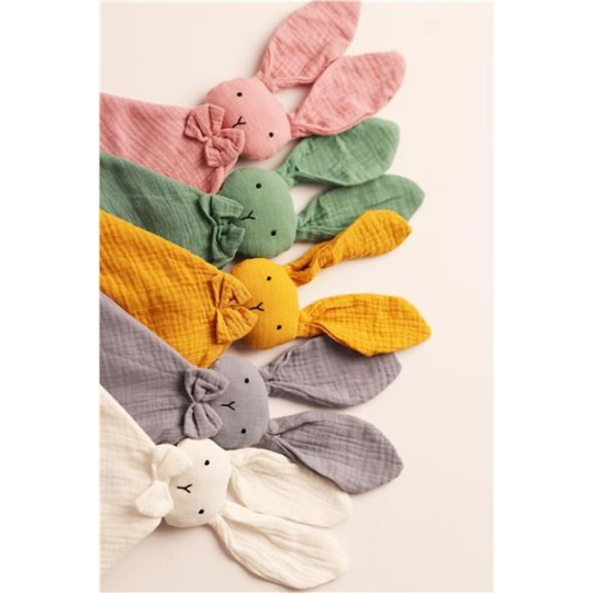 Mušelínový usínáček New Baby Rabbit je ideální plyšová hračka pro naše miminko od prvních dnů života. Vyrobeno z měkké a na dotek příjemné mušelínové tkaniny. Poskytuje pocit bezpečí a usnadňuje usínání. Měkký vzhled a estetické barvy zajišťují estetický a minimalistický design. Plyšová hračka se dokonale hodí k našim dalším mušelínovým výrobkům a vytváří tak krásnou sadu, kterou lze věnovat jako dárek na dětskou oslavu.