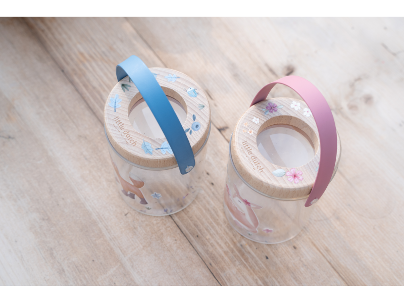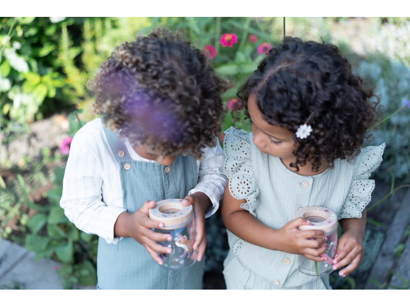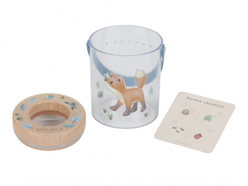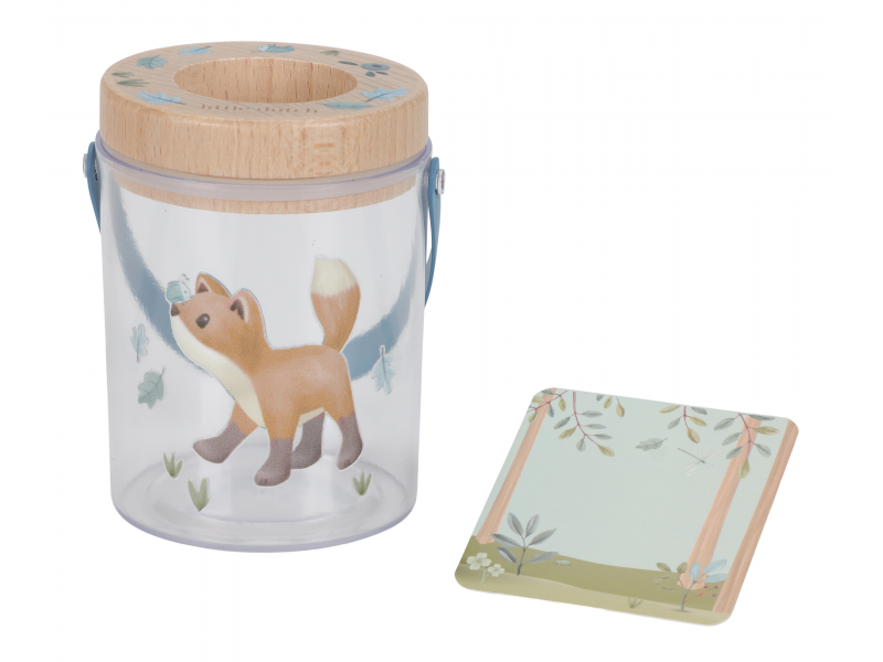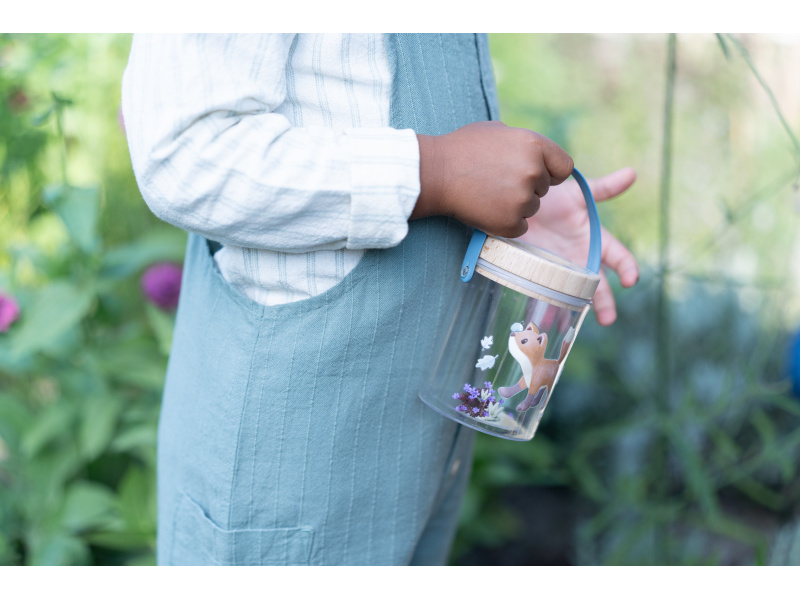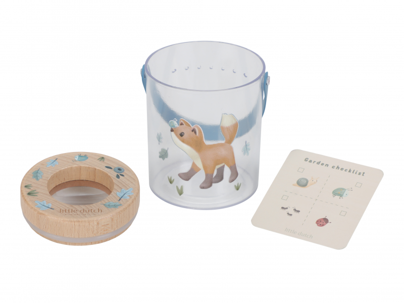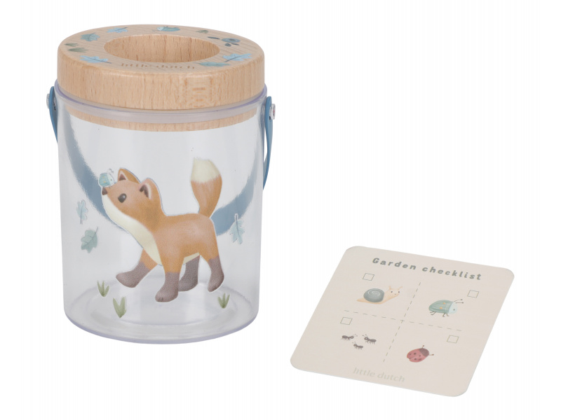 Nádoba na hmyz s krásným potiskem umožní vašemu dítěti bezpečným způsobem pozorovat hmyz, který žije na zahradě či v lese. Nádobka z průhledného plastu má dřevěné víčko s lupou pro zkoumání i těch nejmenších detailů. Větrací otvory zajišťují větrání v nádobce. Díky držadlu se nádobka snadno přenáší. Součástí nádobky je i kartička s obrázky různých malých živočichů, které jsou ideální pro pozorování. Nádoba s krásným potiskem je součástí designové kolekce hraček a doplňků Little Dutch Forest Friends, inspirované životem v lese. Rozměry: 8 x 7,6 x 10 cm Vhodné pro děti od 3 let.