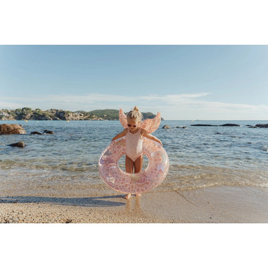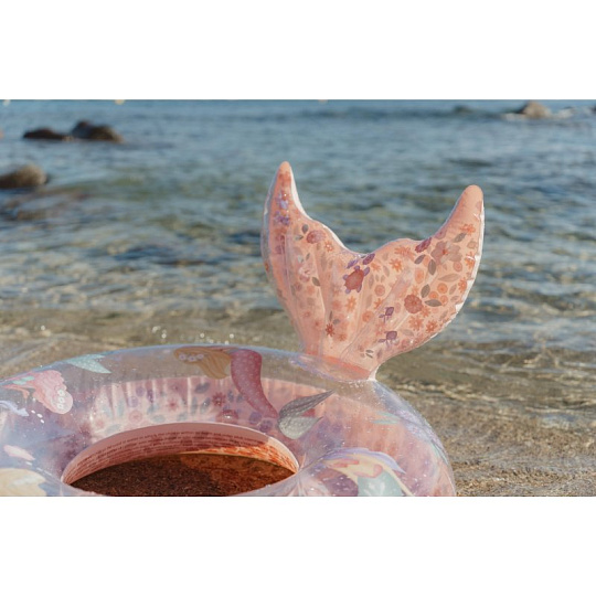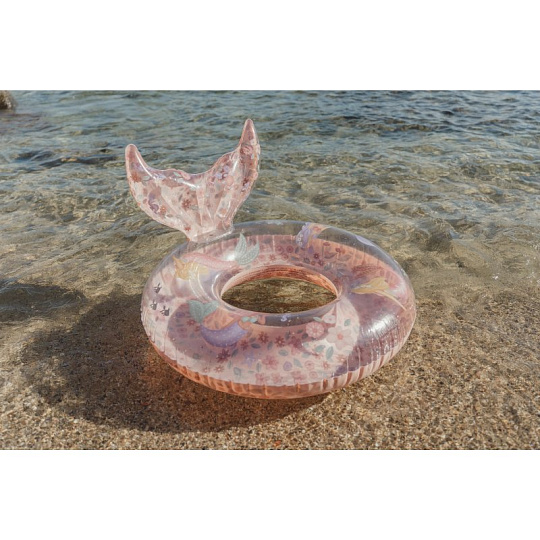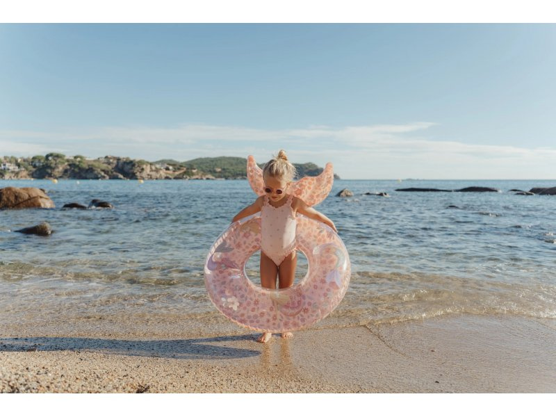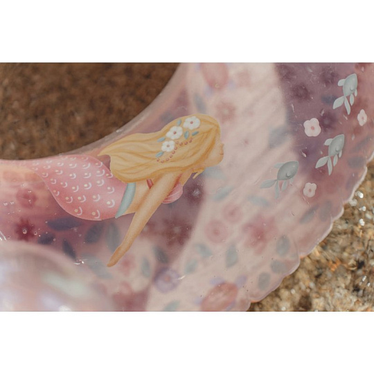 Extra velký nafukovací kruh s krásným potiskem motivů mořské víly a květin vaše děti využijí pro hraní v bazénu i na pláži u moře. Kruh je součástí designové kolekce Little Dutch Dreamy Mermaid. Průměr kruhu: 91 cm Vhodné pro děti od 3 let.