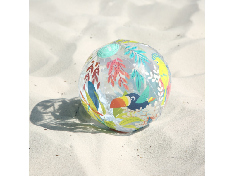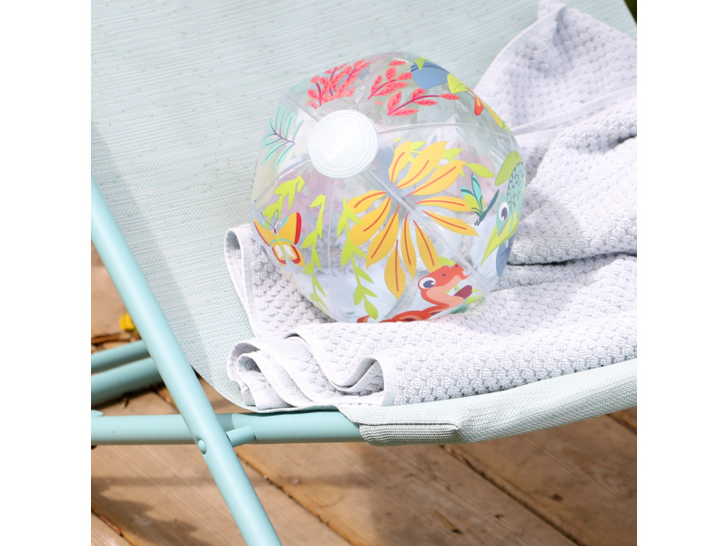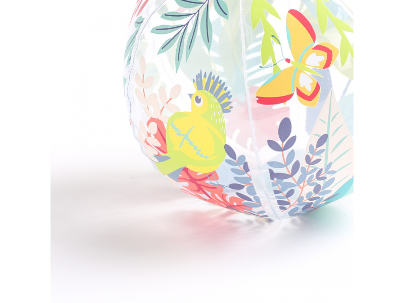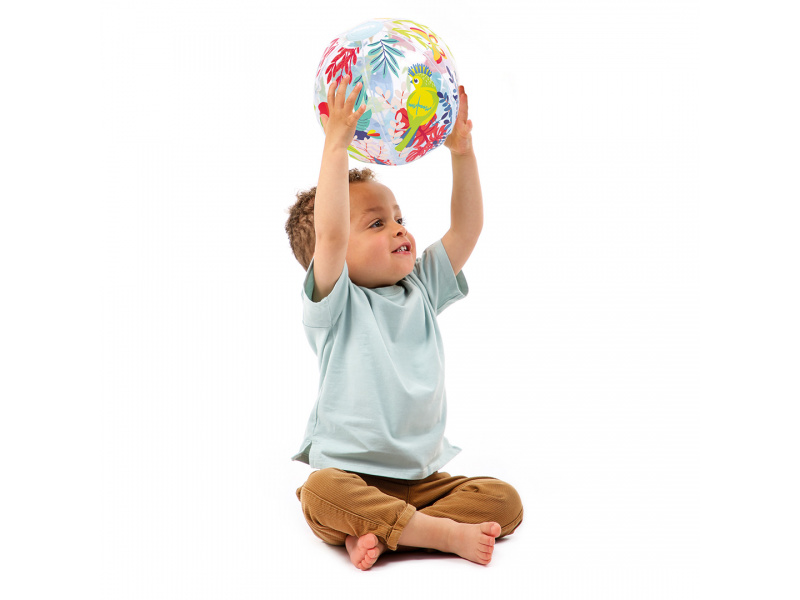 Nafukovací míč Jungle Ball je navržený speciálně pro nejmenší – pomáhá dětem objevovat svět pohybu, hmatu i zraku. Díky tropickému motivu a veselým barvám přitahuje pozornost a probouzí přirozenou zvídavost dítěte. Děti si s míčem mohou házet, kutálet ho, odrážet i sledovat jeho pohyb. Hraní s míčem stimuluje hrubou motoriku, reflexy i představivost. Míč má ideální průměr 20 cm – snadno ho uchopí i malé dětské ručky Měkce nafouknutý a příjemný na dotek – bezpečný při hře doma i venku Průhledné detaily přidávají vizuální zajímavost a podporují rozvoj zraku a koordinace Rozměry: Ø 20 cm Složení: 100 % PVC Vhodné pro děti od 6 měsíců.