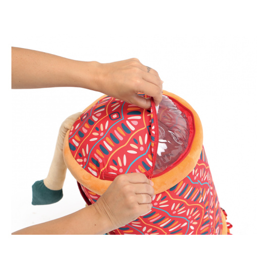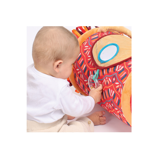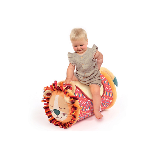 Originální hračka ve tvaru válce s množstvím aktivit pro zkoumání zabaví dítě a současně podněcuje rozvoj jeho smyslů a motorických dovedností. Uvnitř skrývá cinkající míčky, textilní potah nabízí různorodé textury, bezpečné zrcátko i chrastítko. Vnitřní část je nafukovací, takže válec je lehoučký a dítě ho dokáže snadno zvednout. Snímatelný textilní potah je možné prát v pračce. Rozměry: 45 x 27 x 27 cm Vhodné pro děti od 6 měsíců.