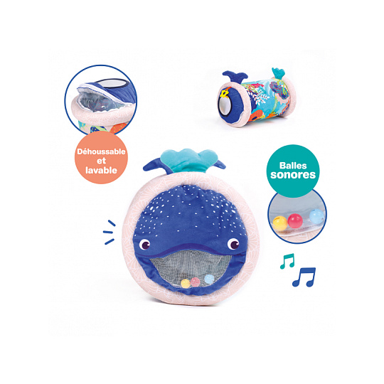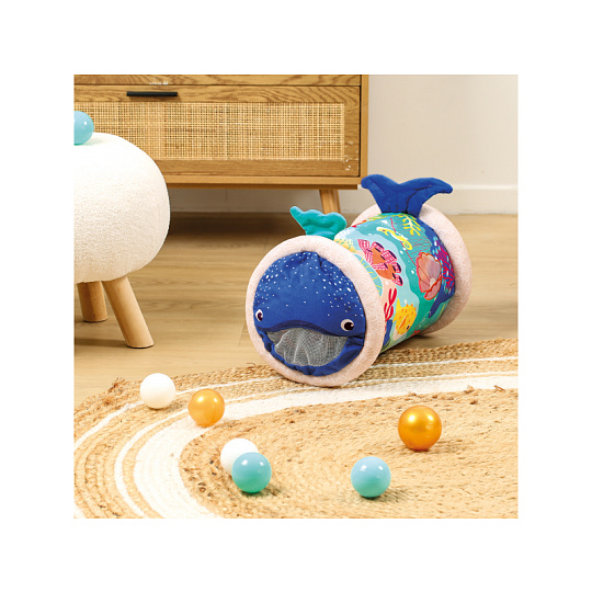 Originální hračka ve tvaru válce s množstvím aktivit pro zkoumání zabaví dítě a současně podněcuje rozvoj jeho smyslů a motorických dovedností. Uvnitř skrývá cinkající míčky, textilní potah s krásnými motivy ze života pod mořskou hladinou nabízí různorodé textury, bezpečné zrcátko i chrastítko. Dítě se o válec může opírat, lézt přes něj, přetáčet ho nebo ho „dohánět“ při plazení. Vnitřní část je nafukovací, takže válec je lehoučký a dítě ho dokáže snadno zvednout. Rozměry: 45 x 27 x 27 cm Údržba: Otírejte vlhkým hadříkem Vhodné pro děti od 6 měsíců.