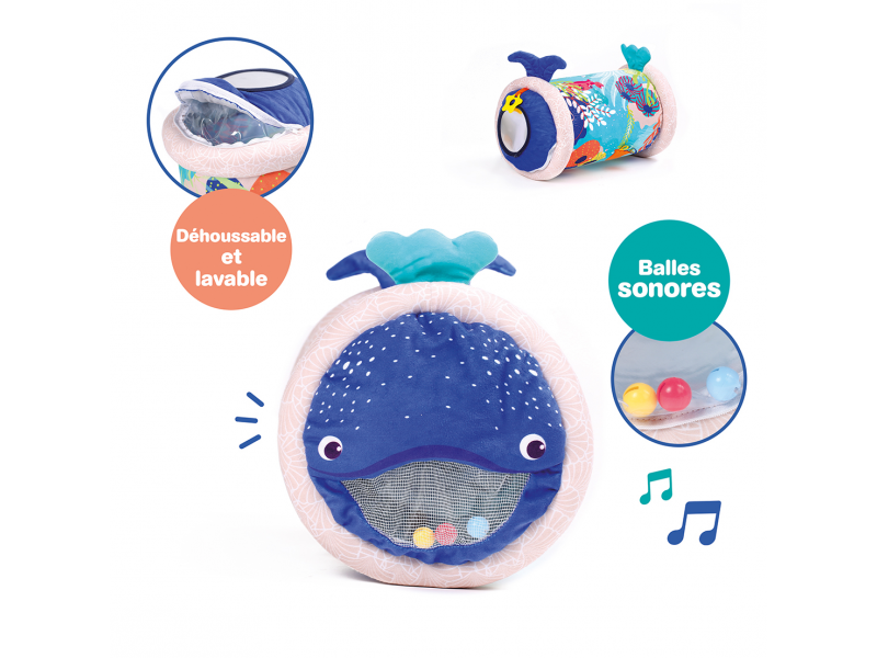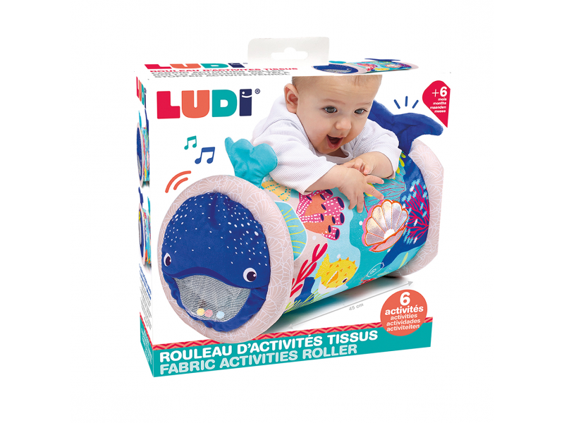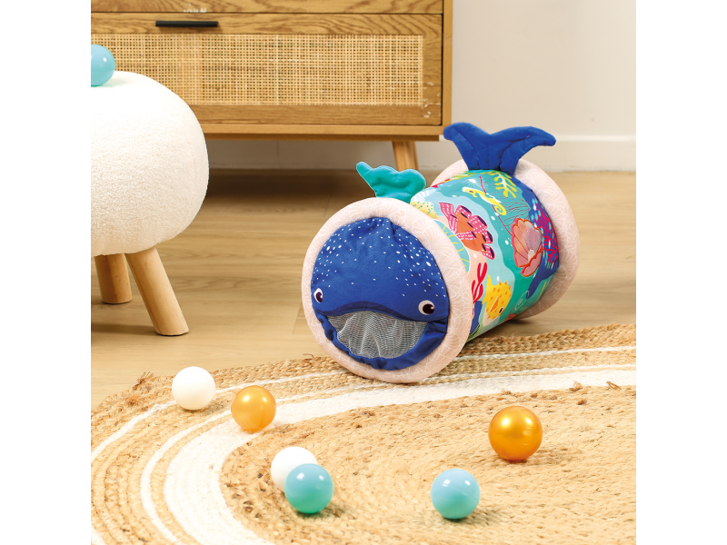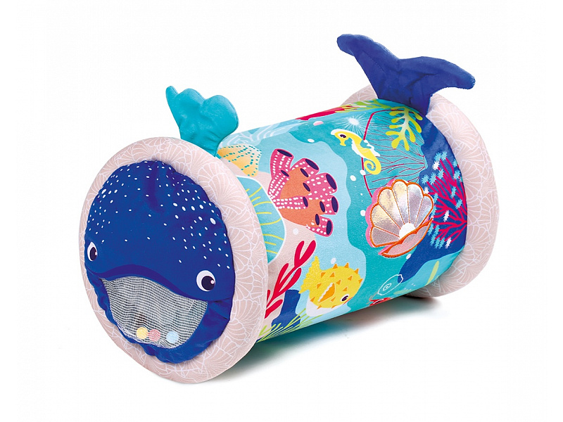 Originální hračka ve tvaru válce s množstvím aktivit pro zkoumání zabaví dítě a současně podněcuje rozvoj jeho smyslů a motorických dovedností. Uvnitř skrývá cinkající míčky, textilní potah s krásnými motivy ze života pod mořskou hladinou nabízí různorodé textury, bezpečné zrcátko i chrastítko. Dítě se o válec může opírat, lézt přes něj, přetáčet ho nebo ho „dohánět“ při plazení. Vnitřní část je nafukovací, takže válec je lehoučký a dítě ho dokáže snadno zvednout. Rozměry: 45 x 27 x 27 cm Údržba: Otírejte vlhkým hadříkem Vhodné pro děti od 6 měsíců.