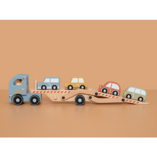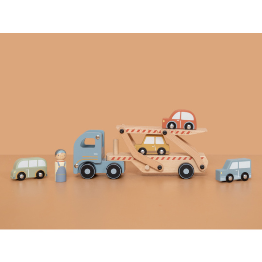 Dřevěný kamion se 4 auty je tou pravou hračkou pro všechny malé řidiče. Sklápěcí nákladní plocha umožní autům pohodlně najet na kamion a stejně pohodlně z něj opět sjet. Rozměry: 29 x 15 x 8 cm Vhodné pro děti od 18 měsíců.