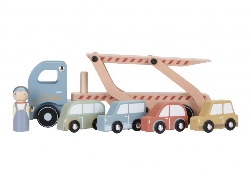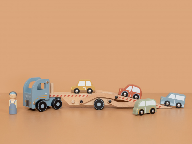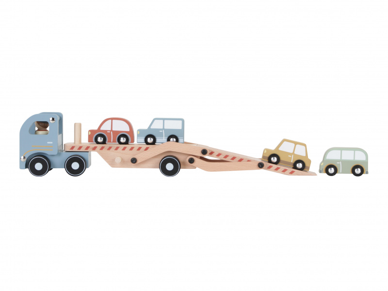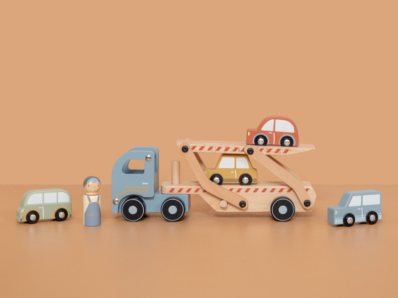 Dřevěný kamion se 4 auty je tou pravou hračkou pro všechny malé řidiče. Sklápěcí nákladní plocha umožní autům pohodlně najet na kamion a stejně pohodlně z něj opět sjet. Rozměry: 29 x 15 x 8 cm Vhodné pro děti od 18 měsíců.