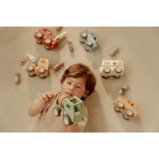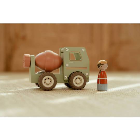 Míchat a stavět! Tento dřevěný míchač betonu je připraven na práci na stavbě. Při jízdě se buben míchačky otáčí, takže hra vypadá jako skutečná. Robustní náklaďák s gumovými pneumatikami zajišťuje hladkou a tichou jízdu. Součástí hračky je dřevěná figurka stavbyvedoucího, která dodá hře ještě více zábavy a realismu. Míchačku můžete kombinovat s dalšími stavebními vozidly – například s nakladačem, autojeřábem nebo sklápěčkou – pro kompletní stavební dobrodružství. Hračka je součástí kolekce vysoce kvalitních dřevěných hraček Little Dutch, navržených s důrazem na bezpečnost a originální design. Vyrobeno z odolného FSC certifikovaného dřeva. Rozměry: 15,3 x 7,5 x 10 cm Vhodné pro děti od 18 měsíců.