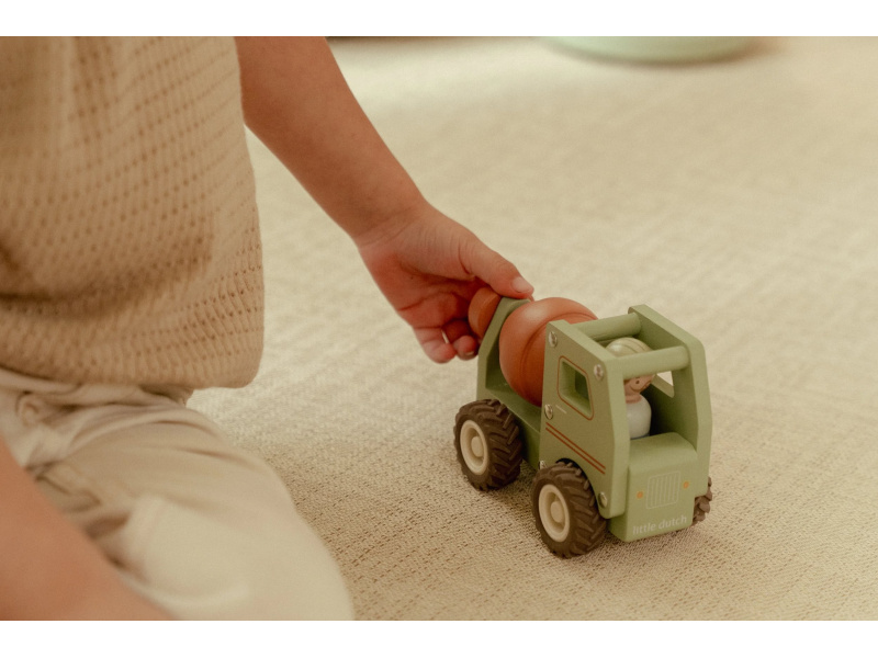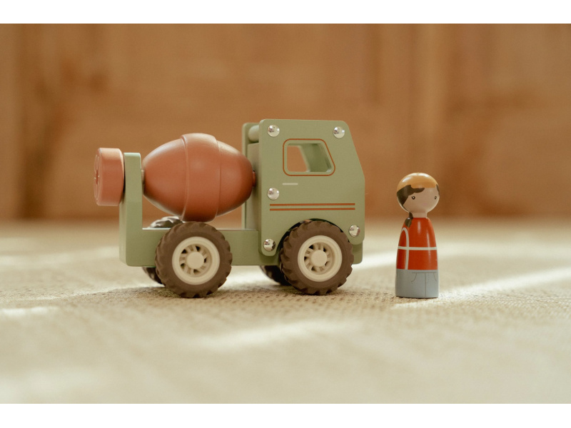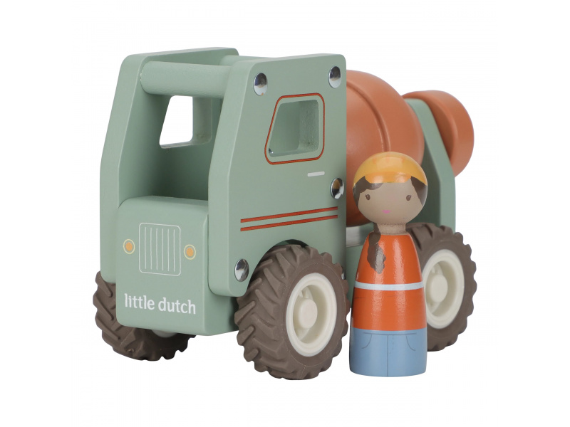 Míchat a stavět! Tento dřevěný míchač betonu je připraven na práci na stavbě. Při jízdě se buben míchačky otáčí, takže hra vypadá jako skutečná. Robustní náklaďák s gumovými pneumatikami zajišťuje hladkou a tichou jízdu. Součástí hračky je dřevěná figurka stavbyvedoucího, která dodá hře ještě více zábavy a realismu. Míchačku můžete kombinovat s dalšími stavebními vozidly – například s nakladačem, autojeřábem nebo sklápěčkou – pro kompletní stavební dobrodružství. Hračka je součástí kolekce vysoce kvalitních dřevěných hraček Little Dutch, navržených s důrazem na bezpečnost a originální design. Vyrobeno z odolného FSC certifikovaného dřeva. Rozměry: 15,3 x 7,5 x 10 cm Vhodné pro děti od 18 měsíců.