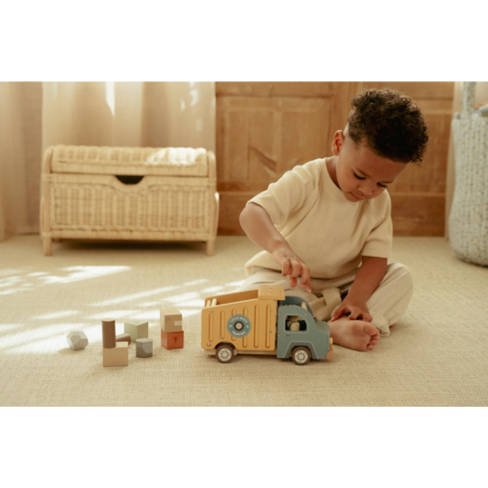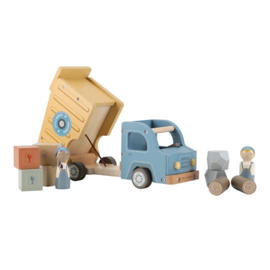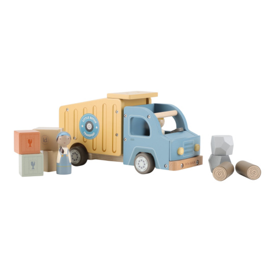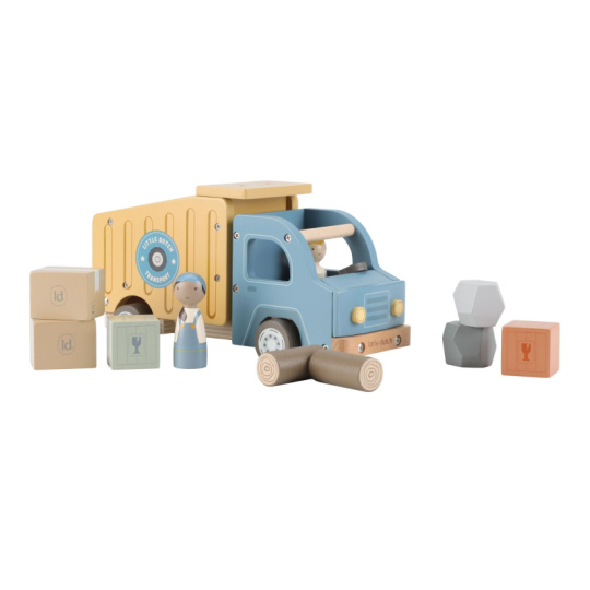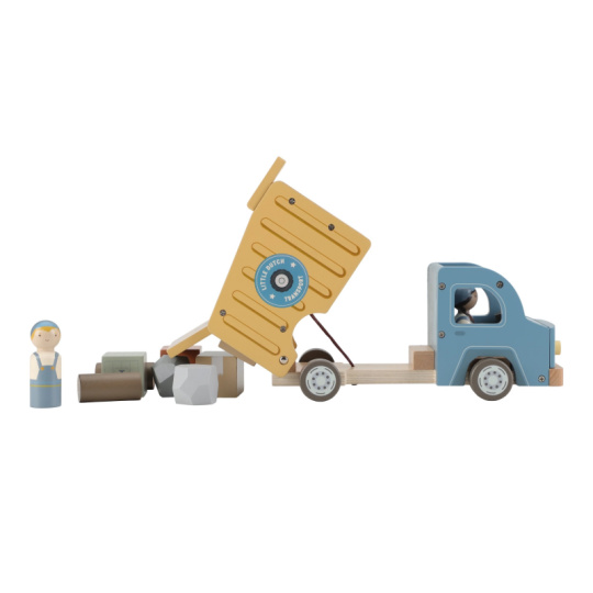 Náklaďák se sklápěčkou je ideální hračka pro malé stavitele, kteří chtějí převážet, vykládat a vymýšlet nové příběhy. Kvalitní dřevěné provedení s důrazem na detail zajišťuje dlouhou životnost a hodiny kreativní hry. Auto má funkční sklápěcí korbu, díky které děti snadno naloží a vyloží svůj náklad. Součástí balení jsou dva řidiči a různé typy nákladu – klády, kameny a dřevěné bedýnky. Děti tak mohou vymýšlet stále nové příběhy, rozvíjet fantazii a procvičovat jemnou motoriku. Funkční sklápěcí korba Obsahuje 2 postavičky řidičů Různé náklady: klády, kameny, bedýnky Odolné dřevěné provedení s kvalitním zpracováním Hračka je součástí kolekce vysoce kvalitních dřevěných hraček Little Dutch, navržených s důrazem na bezpečnost a originální design. Vyrobeno z odolného FSC certifikovaného dřeva. Rozměry: 24,5 × 12,5 × 9 cm Vhodné pro děti od 2 let.