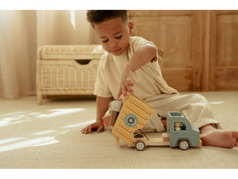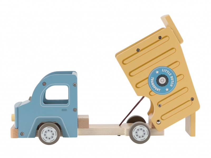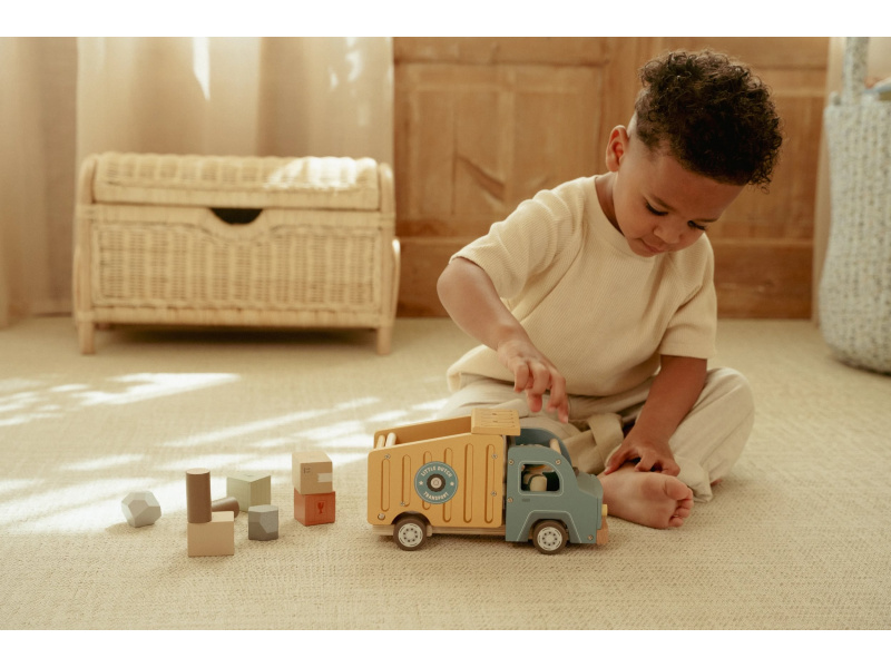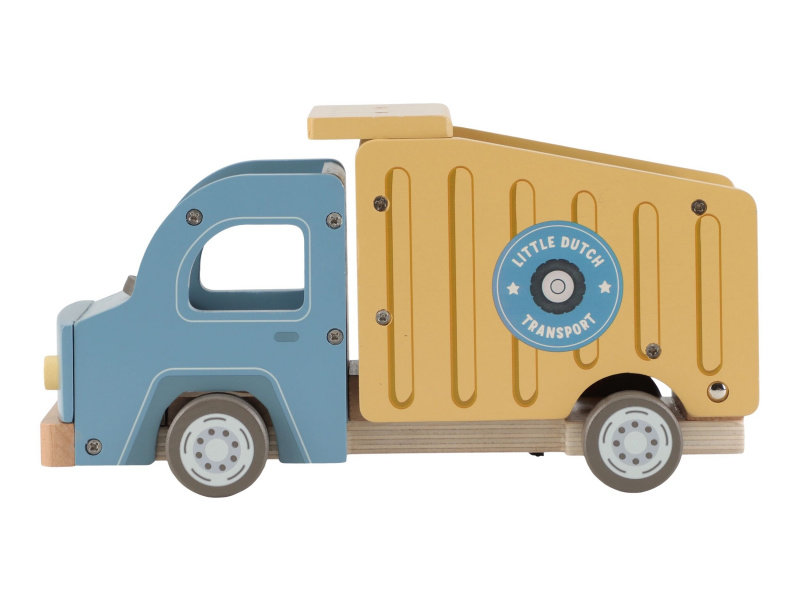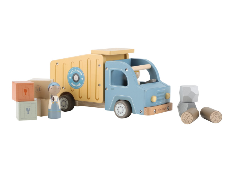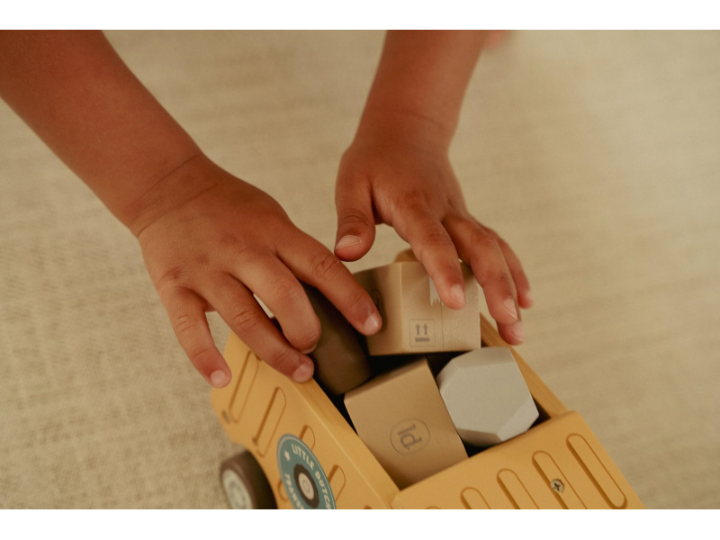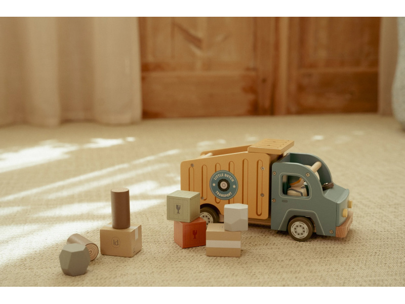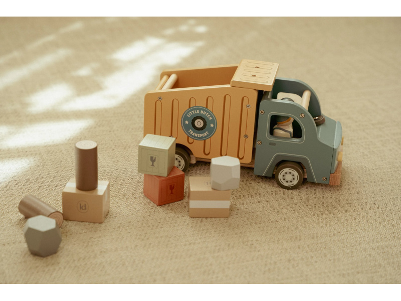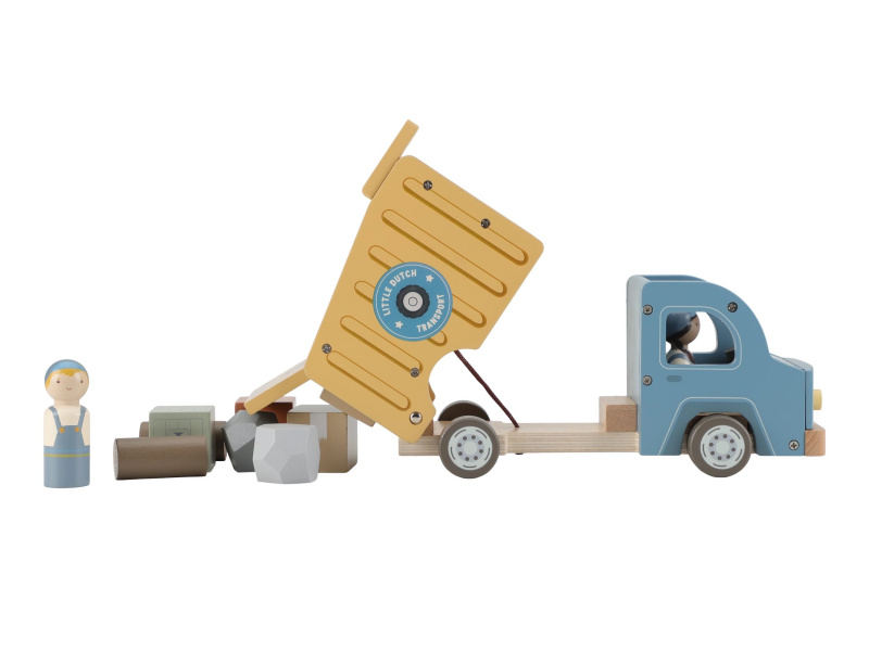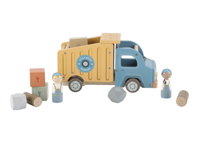 Náklaďák se sklápěčkou je ideální hračka pro malé stavitele, kteří chtějí převážet, vykládat a vymýšlet nové příběhy. Kvalitní dřevěné provedení s důrazem na detail zajišťuje dlouhou životnost a hodiny kreativní hry. Auto má funkční sklápěcí korbu, díky které děti snadno naloží a vyloží svůj náklad. Součástí balení jsou dva řidiči a různé typy nákladu – klády, kameny a dřevěné bedýnky. Děti tak mohou vymýšlet stále nové příběhy, rozvíjet fantazii a procvičovat jemnou motoriku. Funkční sklápěcí korba Obsahuje 2 postavičky řidičů Různé náklady: klády, kameny, bedýnky Odolné dřevěné provedení s kvalitním zpracováním Hračka je součástí kolekce vysoce kvalitních dřevěných hraček Little Dutch, navržených s důrazem na bezpečnost a originální design. Vyrobeno z odolného FSC certifikovaného dřeva. Rozměry: 24,5 × 12,5 × 9 cm Vhodné pro děti od 2 let.