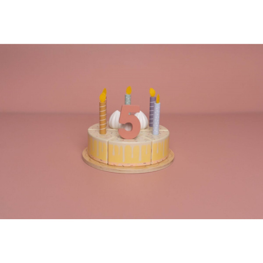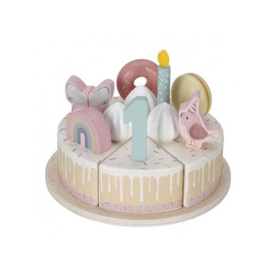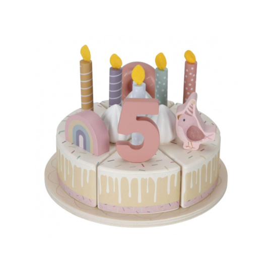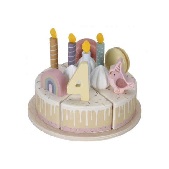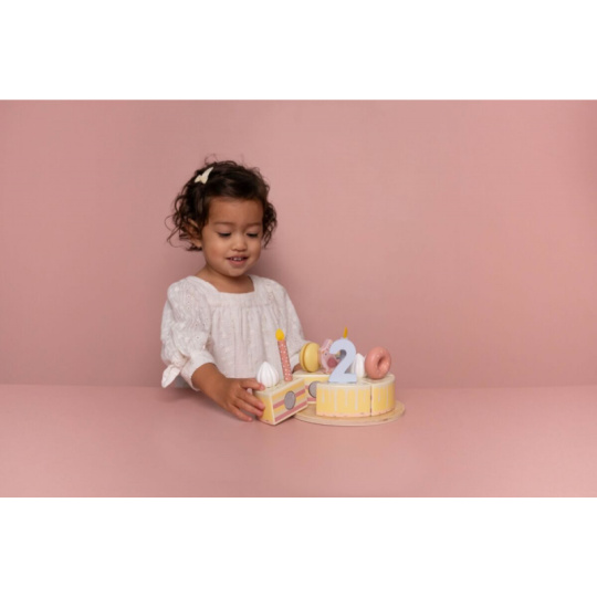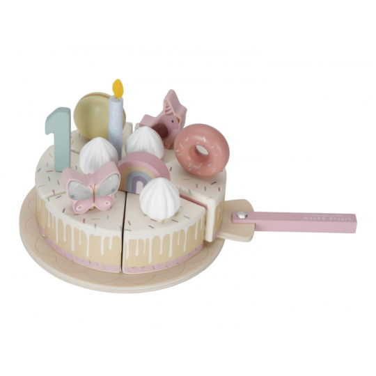 Všechno nejlepší k narozeninám! Ozdobte spolu s vaším dítětem tento nádherný narozeninový dort podle vlastní fantazie a oslava může začít! Sada s dortem v krásném dřevěném provedení obsahuje 6 kousků dortu, 8 odnímatelných zdobení, 5 číslic, 5 svíček, talíř na dort a servírovací lopatku. Dort se dokonale hodí ke kávovaru nebo kuchyňce od Little Dutch. Rozměry: 17,5 x 17,5 x 13 cm Vhodné pro děti od 3 let.