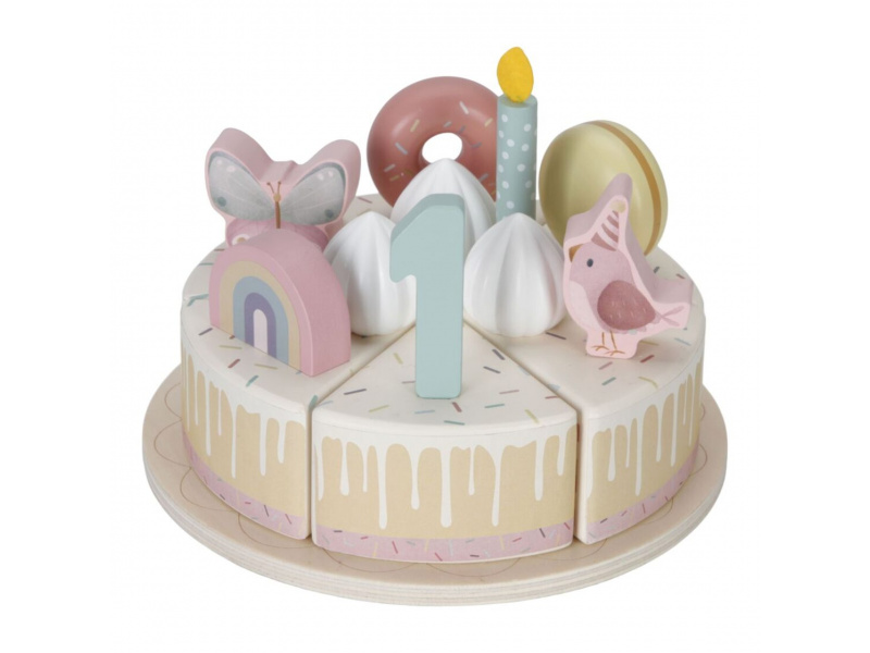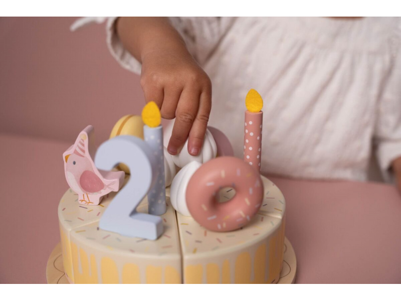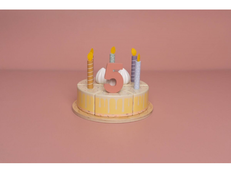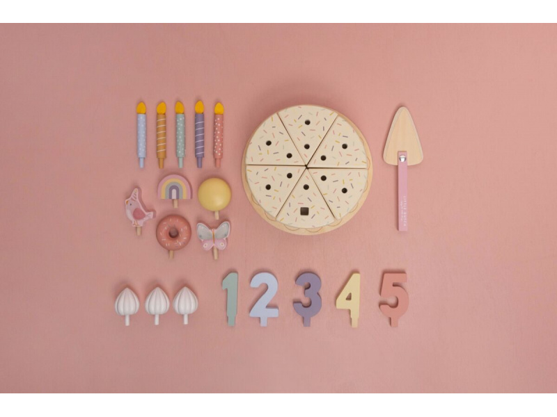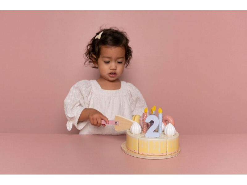 Všechno nejlepší k narozeninám! Ozdobte spolu s vaším dítětem tento nádherný narozeninový dort podle vlastní fantazie a oslava může začít! Sada s dortem v krásném dřevěném provedení obsahuje 6 kousků dortu, 8 odnímatelných zdobení, 5 číslic, 5 svíček, talíř na dort a servírovací lopatku. Dort se dokonale hodí ke kávovaru nebo kuchyňce od Little Dutch. Rozměry: 17,5 x 17,5 x 13 cm Vhodné pro děti od 3 let.